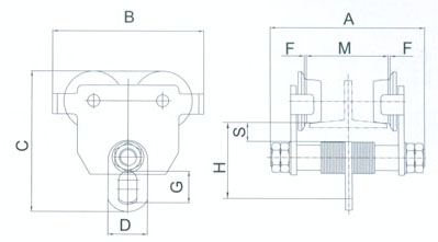 單軌行車是一種結構簡單、操作方便、輕小型調運配套起重機械,它可以與手拉葫蘆、環(huán)鏈電動葫蘆等起重產品配套組成起重運輸小車,自如地運行于可以有一定曲率半徑的工字鋼軌道的下翼緣上,用來調運貨物、設備等。
